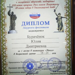 Победа на международном фестивале-конкурсе «Молодые голоса Отечества» в Москве