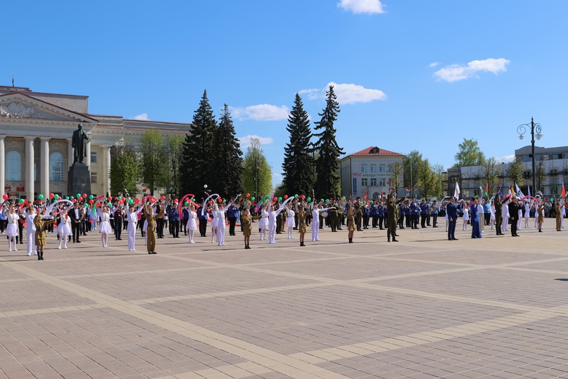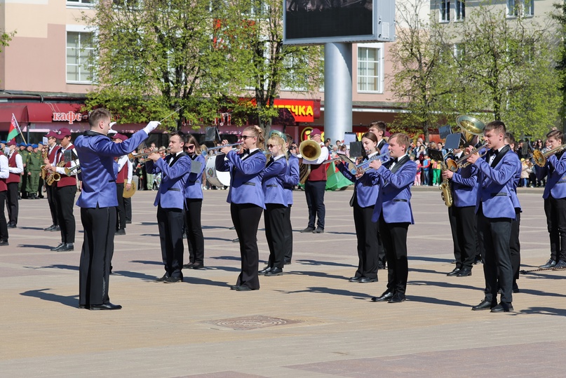 Торжественные мероприятия в честь 78-й годовщины Великой Победы начались на Центральной площади. В память о жертвах и героях Великой Отечественной войны прошел митинг «Символы гордости, чести и славы» с церемонией поднятия Государственного Флага Республики Беларусь, а также ретро-миксом духовых оркестров «Песни Победы» и музыкально-хореографической постановкой «Героям посвящается…» с участием солистов Дворца культуры и хореографических студий гимназии-колледжа искусств г.Молодечно.